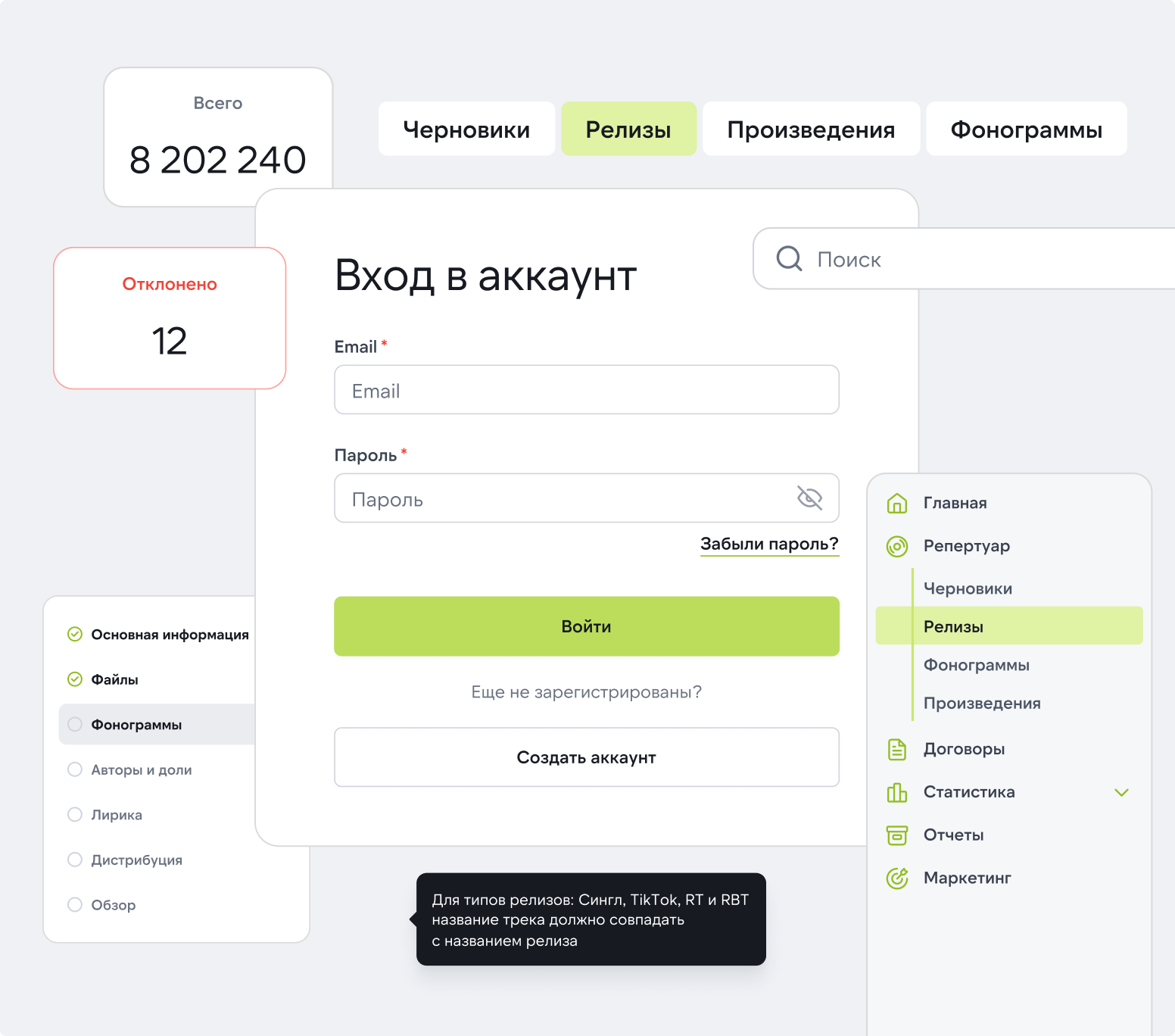 В процессе анализа и редизайна я изучила паттерны ведущих сервисов в сфере лицензирования контента, финтеха и SaaS. Исследование помогло выстроить обновлённый UX и визуальный язык платформы, сохранив функциональность.